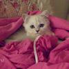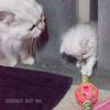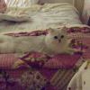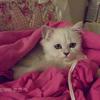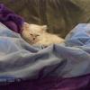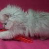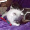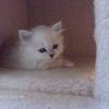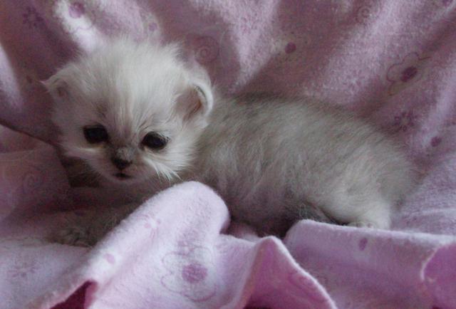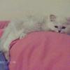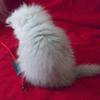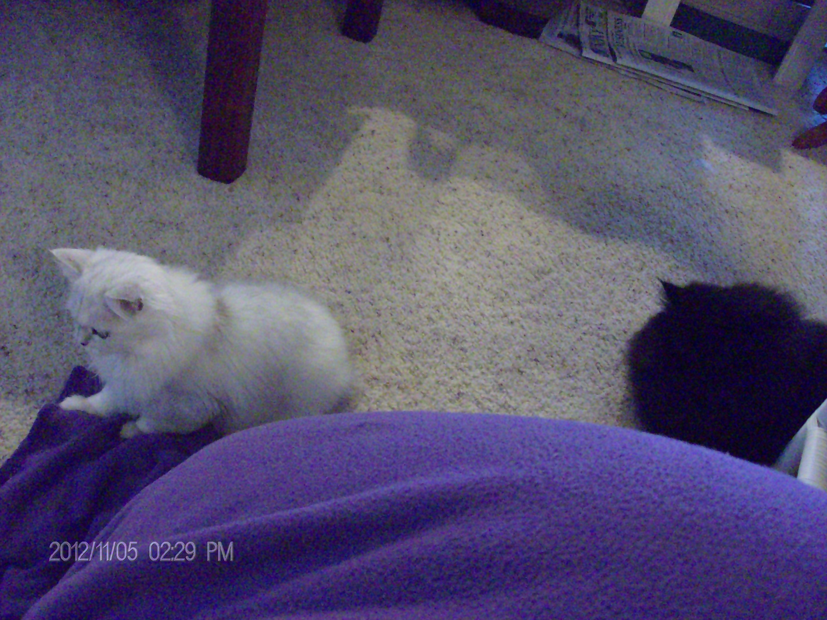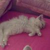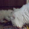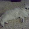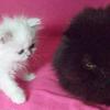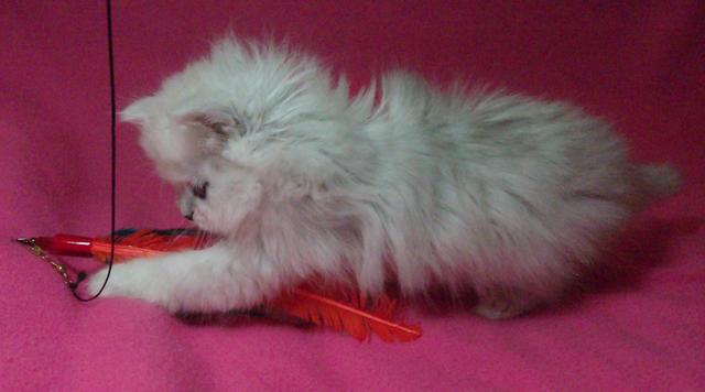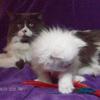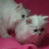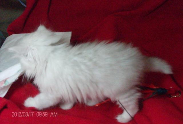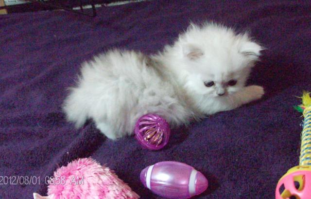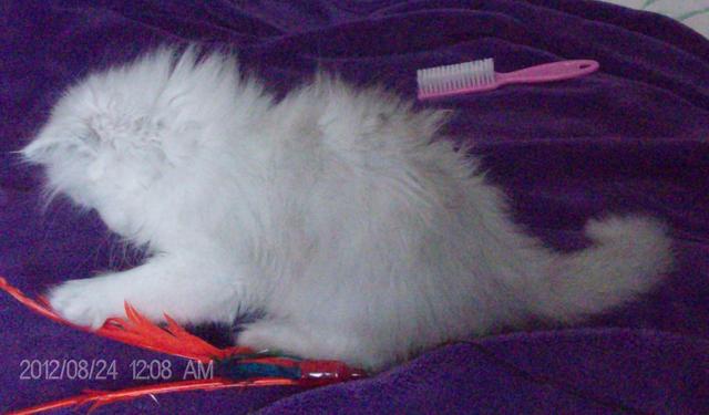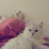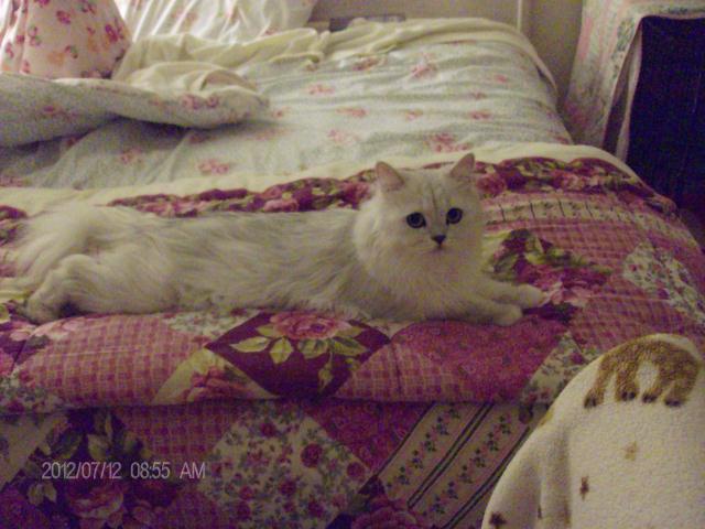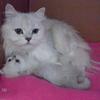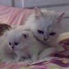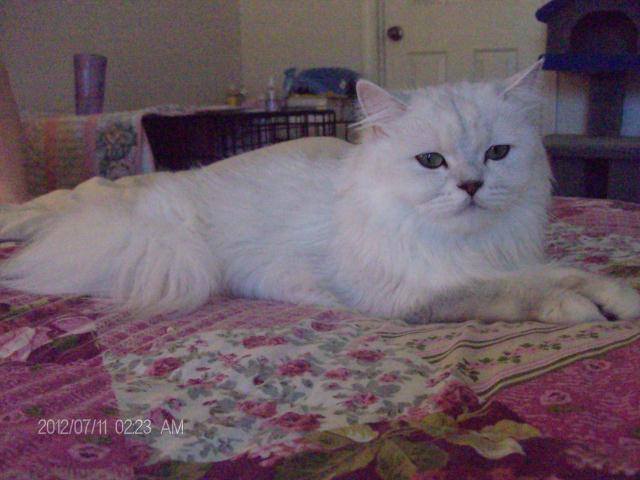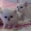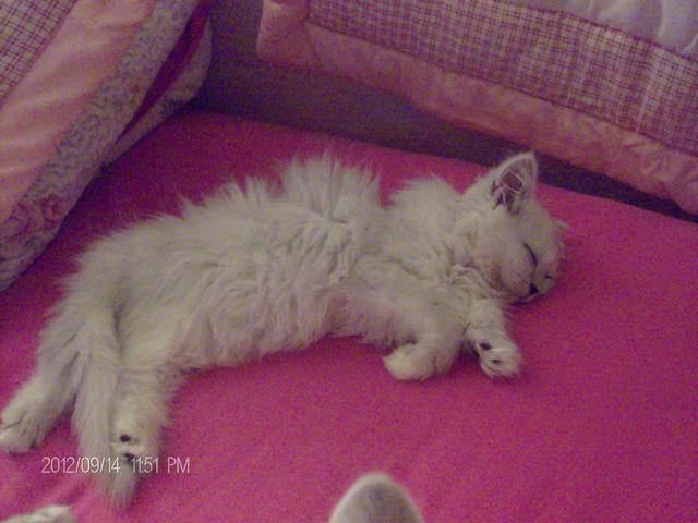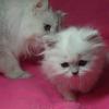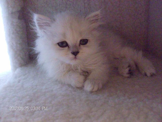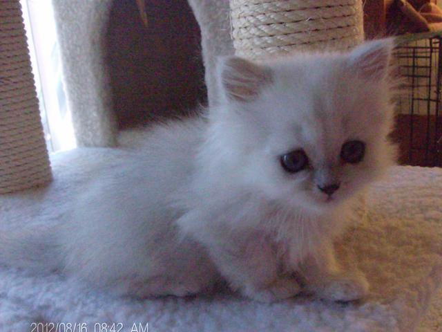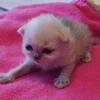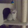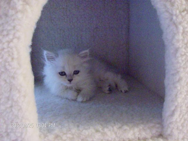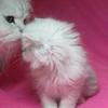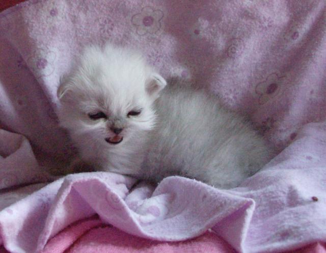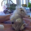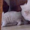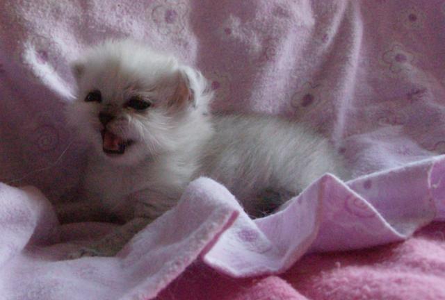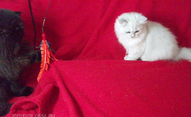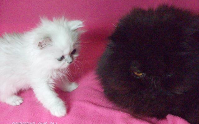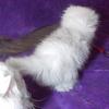 Misty is on the right, Leilani is on the left. This is during summer shed which is why Leilani seems so thin; most of the persian hair has shed leaving the fine silky angora. Notice the look on Misty's face, she is done with being pregnant. This was taken at 40 days.