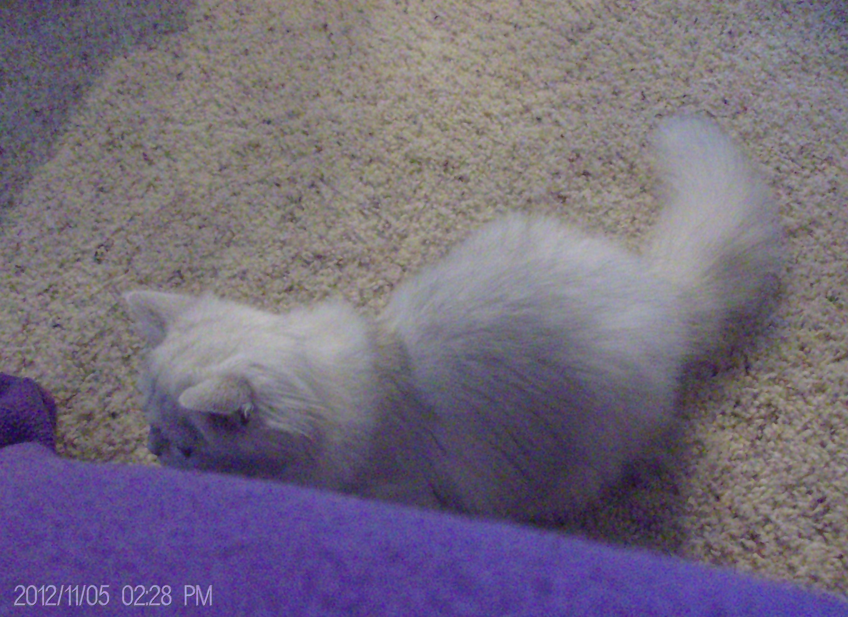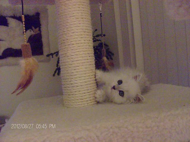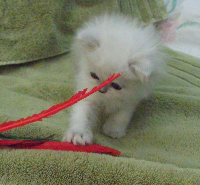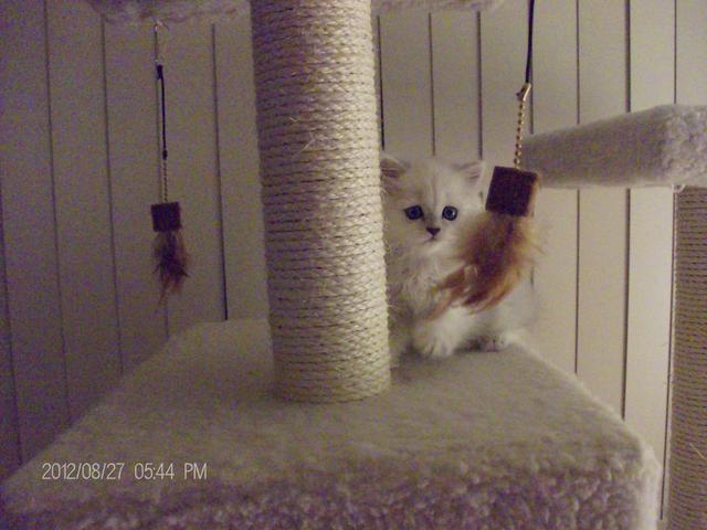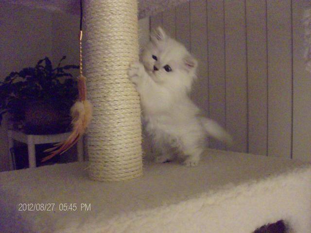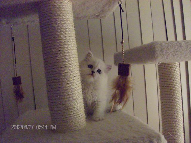 I have learned many new things this week (all taught to me by Gramma Leilani) : hide & seek, running fast, jumping straight up in the air & sideways, playing with big sister Dusty, eating solid food, using the scratch post, sticking my back leg up in the air to clean my pantaloons and last but not least using my litter box.