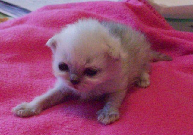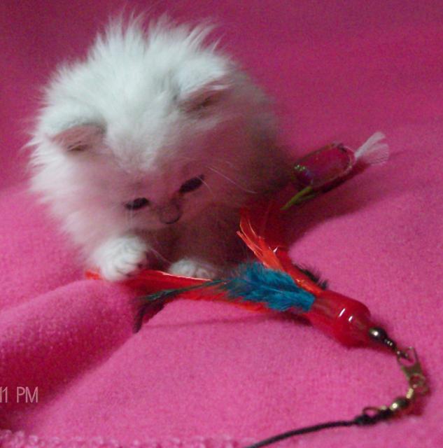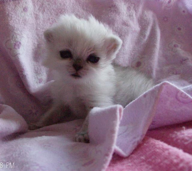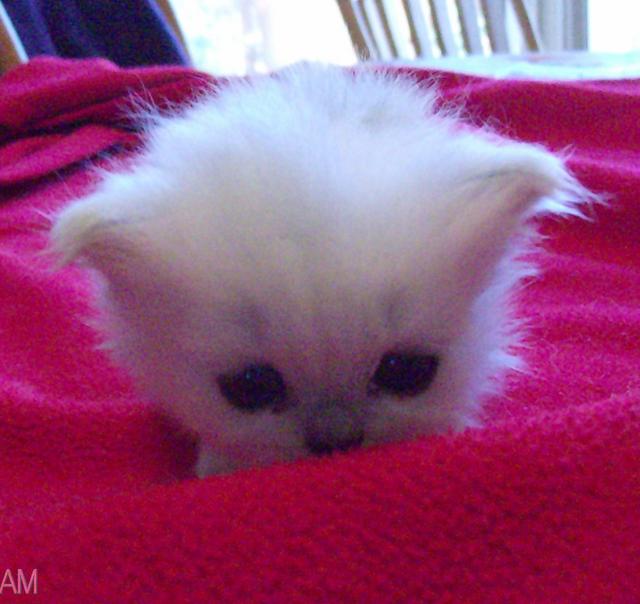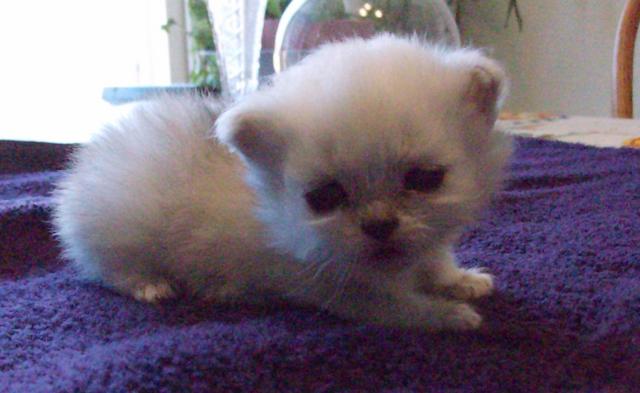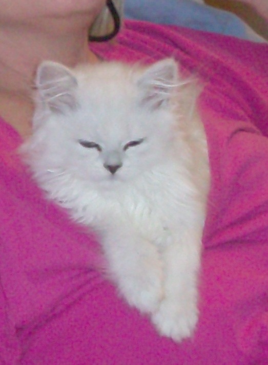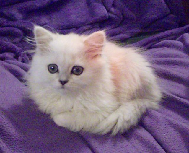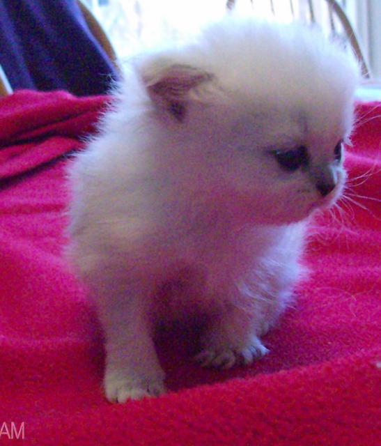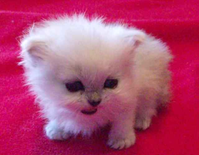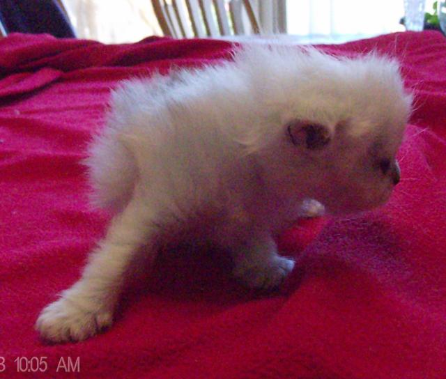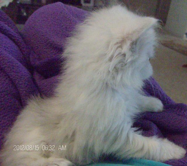 Notice that her hair is going from short & fuzzy kitten hair to longer hair in different lengths. It is very fine angora. Here are the shots from the front.
