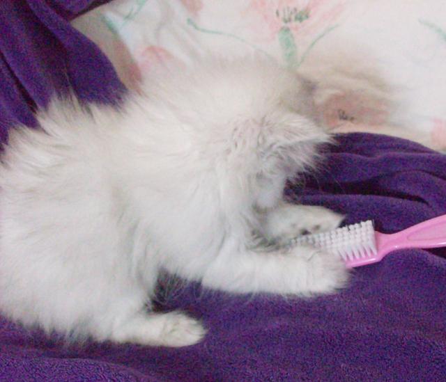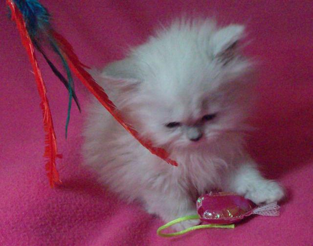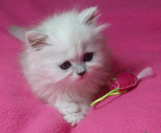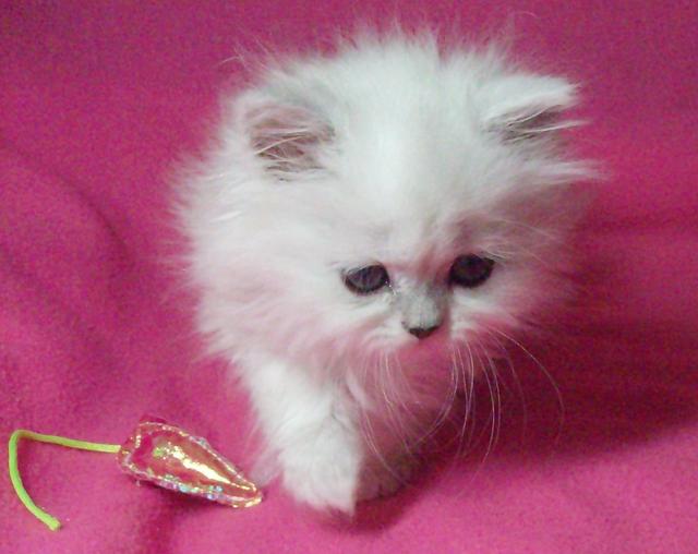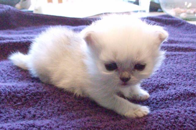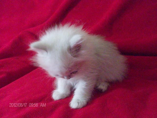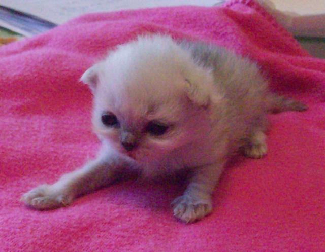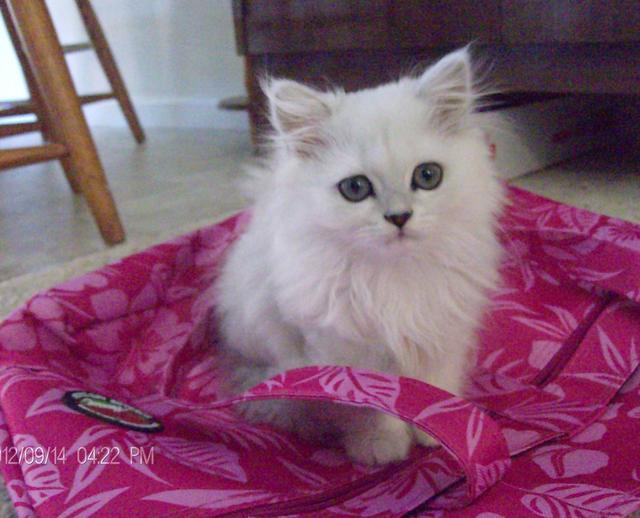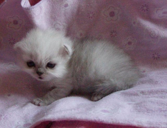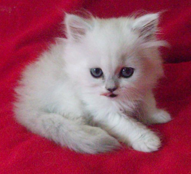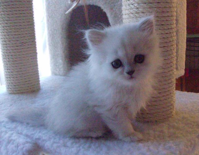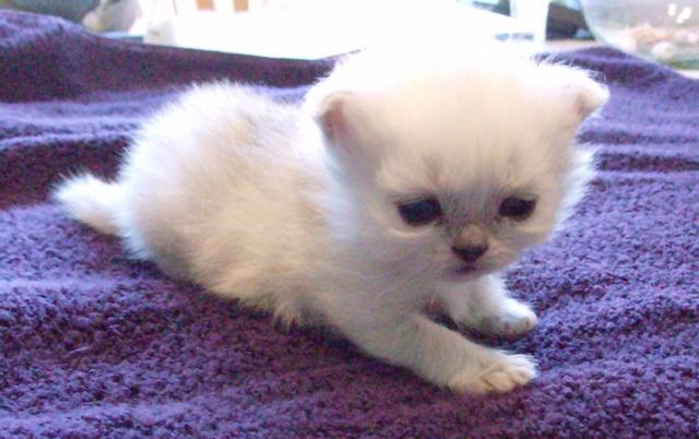 Notice that her hair is going from short & fuzzy kitten hair to longer hair in different lengths. It is very fine angora. Here are the shots from the front.