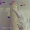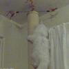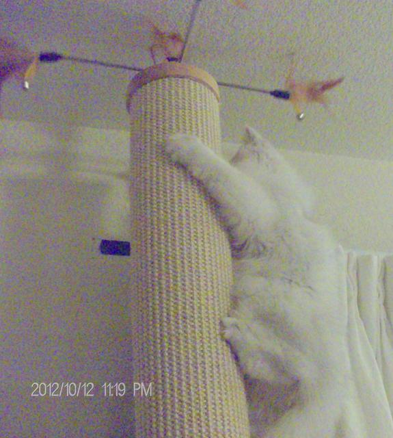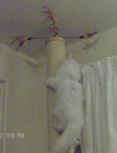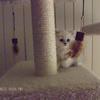 Here's scratching post, climbing and jumping practice, Gramma Leilani is a good teacher.