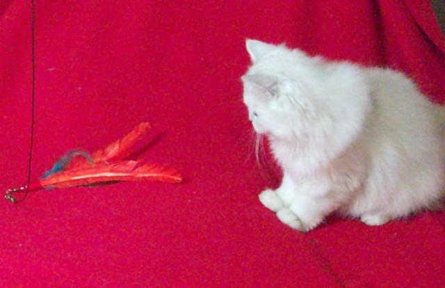 I am a hunter cat. My sister Sunny and brother Benji don't like this bird, but I love it like my Mommycat Misty. Misty leaps & twists in the air to get it.