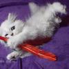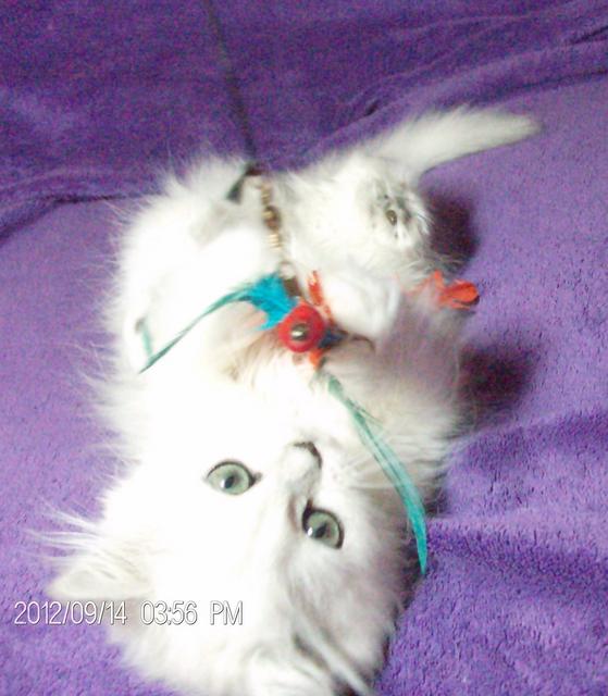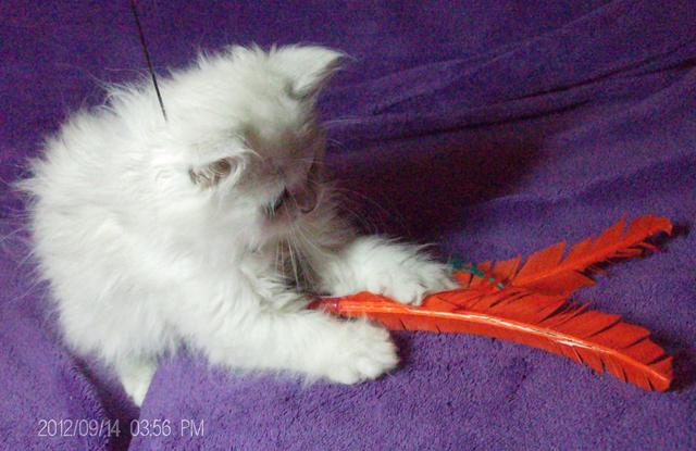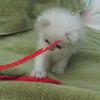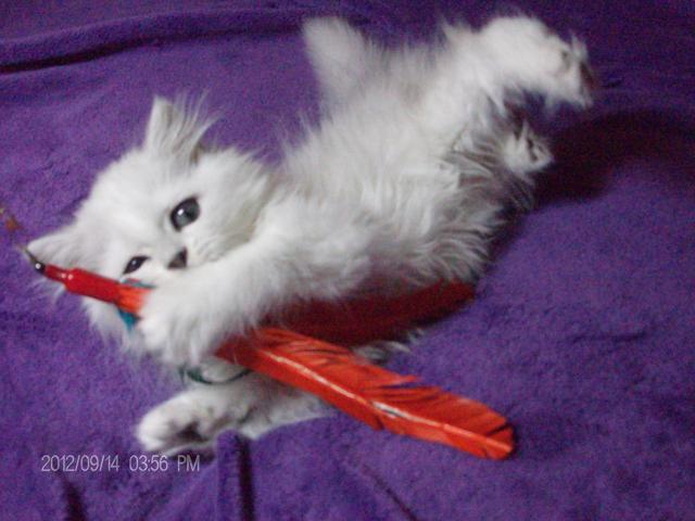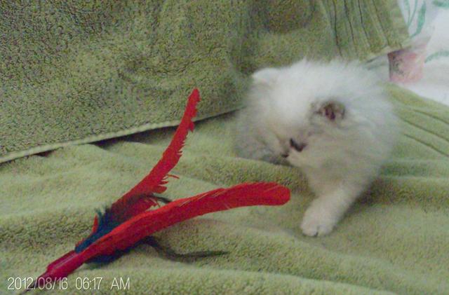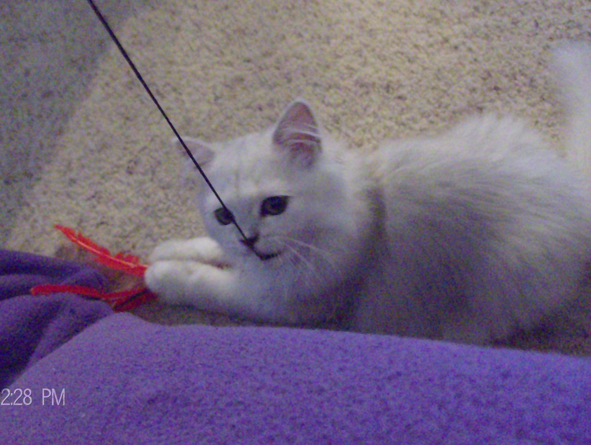 Gramma Judy gave me a couple of new toys today. My new pink mouse and these dangling ribbons. 8-4-12