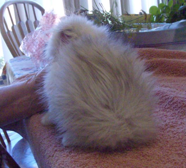 Bella's angora is almost an inch longer than her baby fur. It is very soft and wispy.