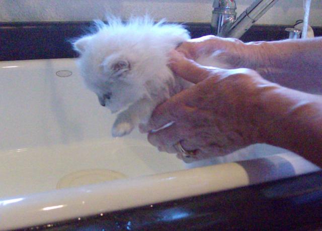 Here is Lola Belle's first bath 8/26/12. She was a champ.