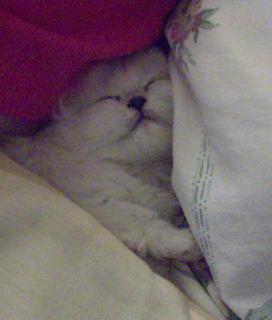 She has her Daddycat's boo-boo eyes which gives her a very serious look, but she is very playful in nature. Sunny her play buddy has been bummed indeed since Misty has slept quite a lot while pregnant.