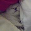 Here is Lola sleeping on Gramma's lap. She loves to be on your chest & lap.