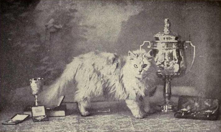 "CHAMPION FULMER ZAIDA is the renowned Silver female owned by Lady Decies. This cat has won more prizes than any other in the Fancy, numbering over 150. Zaida is almost an unmarked specimen, and her colour is wonderfully pure. She has carried off the highest honours at all the leading shows, and will probably continue to win whenever exhibited"September 1902 ("Cats and All About Them" by Frances Simpson)
